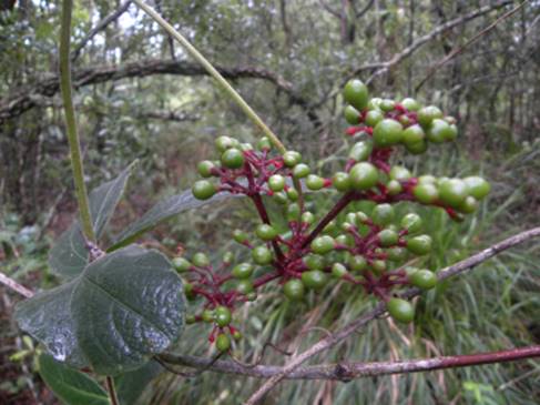 NOMENCLATURA E SIGNIFICADO: UVA DO CERRADO DE FLOR VERMELHA, o nome indígena ainda não foi descoberto. Também é chamada de parreira brava.