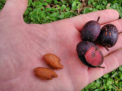 USOS: Frutifica em fevereiro a novembro. Frutos são grandes, com polpa de coloração vinácea e adocicados, tendo um pouco de oxalato de cálcio que pica um pouco na língua; porém essa característica perde o feito assim que a polpa é fervida e a agua da fervura jogada fora. Após esse processo a polpa pode ser utilizada para fazer sucos, doces e sorvetes. Uma dica: Quando a planta é cultivada a planta entende que precisa melhorar no fruto e de fato este melhora em sabor e quantidade de polpa. Por ser uma espécie rara, não deve faltar numa coleção de frutíferas, ainda mais se você deseja atrair o Mico-leão-dourado (Leonthopitecus rosalia) por perto!