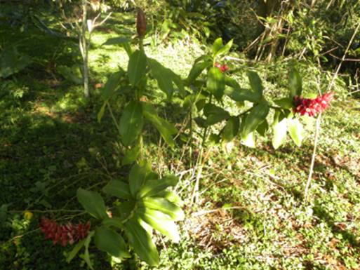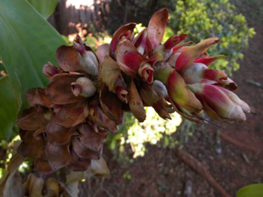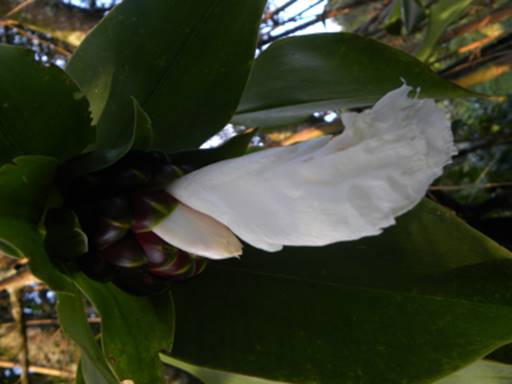 Características: Erva cespitosa (Cuja raiz emite vários caules) formando touceiras com caules que atingem 1 a 3 m de comprimento. Os caules são protegidos por bainhas de 5 a 20 mm de diâmetro e as folhas nascem em espiral ao longo do caule. As folhas são elípticas (compridas e estreitas) a obovadas (com ponta alargada), com textura papirácea (semelhante a papel) e totalmente glabra (sem pelos), medindo 8 a 30 cm de comprimento por 5 a 9 cm de largura. A inflorescência tem forma de ovo no estado inicial, se alongando até 24 cm de comprimento, com brácteas (tipo de folha modificada) côncavas (como barco), coriáceas (rijas) e avermelhadas. As flores são campanuladas (como sino), com lobos ou recortes de 3 a 4,5 cm. As cores variam do branco ao rosa ou até púrpura, no centro existem estames (pequenos tubos) vermelho de 2,5 a 3 cm de comprimento e estigma (órgão masculino) lamelado (com membrana delicada. O fruto é do tipo cápsula e mede 1 a 2 cm de comprimento por 6 a 15 mm de largura.