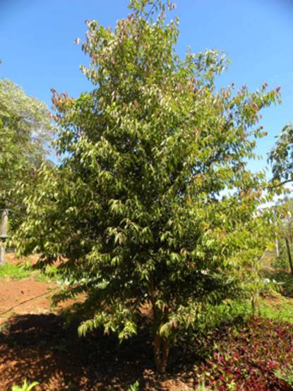Cultivando: Fazer apenas podas de formação da copa e eliminar os galhos que nascerem na base do tronco. Adubar com composto orgânico, pode ser 5 pás de cama de frango bem curtido + 50 gr de N-P-K 10-10-10 dobrando essa quantia a cada ano até o 3ª ano, depois manter essa adubação. A planta frutifica abundantemente se for irrigada na época da floração e frutificação.
