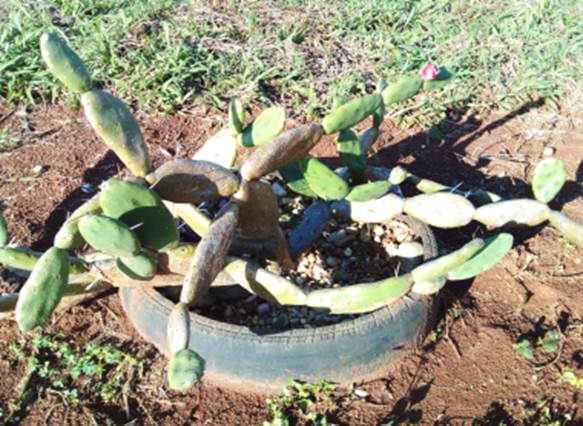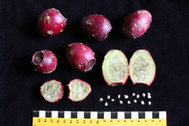 Usos: Frutifica em março a junho. A colheita dos frutos pode ser feita usando um pegador de macarrão ou de carne. Após colhidos lavar os frutos sobre uma peneira e com agua corrente para retirar os espinhos. Após limpos os frutos podem ser cortados ao meio e a polpa consumida com uma colher ou usada para fazer um delicioso e refrescante suco verde. A casca do fruto pode ser usada para fazer geleia que fica semelhante ao sabor de geleia de morango. As sementes podem ser trituradas para fazer um tipo de farinha para diversos usos culinários. As flores após fecundadas podem ser retiradas dos frutos (no ponto que se soltam naturalmente) e podem ser empanadas e frutas. As palmas jovens podem ser transformadas em deliciosos pratos culinários após cozidas ou fervidas. A planta é cultivada como ornamental e como cerca viva, e também tem grande potencial como frutífera de larga aceitação no mercado.