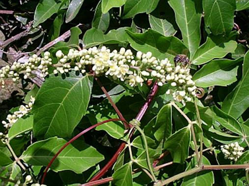 Características: Planta trepadeira com gavinhas (estruturas de sustentação), com tronco lenhoso e ramos flexíveis de 4 a 8 metros de comprimento. O caule é triangular ou retangular, sulcado no centro, com 2 a 3,5 cm de altura por 3 a 6 cm de largura, de coloração verde acinzentada, com manchas esbranquiçadas. Os ramos jovens são lenticelados (com glândulas de trocas gasosas) e pubérulos (como se estivesse coberto de pó bem finininho). As folhas são opostas, pinadas (como pena) composta de 5 folíolos, 2 pares e um impar numa raque (formada de pecíolo ou suporte e nervura principal). Os folíolos medem 3,5 a 12,5 cm dw comprimento por 1,5 a 2,8 cm de largura, são oblongos, ovados, cartáceos, com ápice obtuso ou agudo, base cuneada no folíolo terminal, obtusa ou arredondada nos restantes, margem denteado-serreada, pubérula na nervura principal na face adaxial (costas da folha) e facilmente identificada por se observar escassos tricomas (pelos em forma de T) glandulares na face abaxial e domácias pilosas. A inflorescência nasce na ponta das gavinhas em tirsos (cacho com flores agrupadas em feixes numa haste central), contendo de 20 a 50 feixes com 3 flores cada. A flor é branca ou creme, tem 5 mm de diâmetro quando aberta. Os frutos são cápsulas com 2 ou 3 valvas ou aberturas, vermelhas na maturação com 1 ou 2 sementes pretas envolvidas em arilo amiláceo e adocicado.