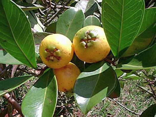 com frutos amarelos chamada cientificamente de Psidium