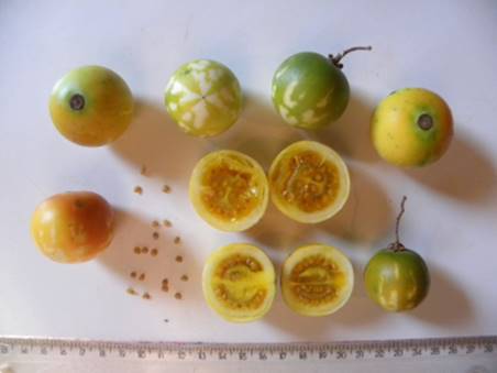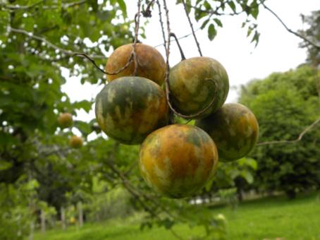 OBSERVAÇÕES: A MISTERIOSA FAMILIA DAS SOLANÁCEAS SEMPRE NOS SUPREENDE COM FRUTAS INCLIVEIS. A PARTIR DO INVERNO DE 2.010 AO ANDAR PELA MATA SE ENROSCAMOS NUM CIPÓ COM ESPINHOS CURVOS E NOTAMOS O QUE PARECIA SER UMA SOLANACEA. O TEMPO PASSOU E NO VERÃO DO MESMO ANO TROUXEMOS A PLANTA PARA SE CULTIVAR EM UMA PARREIRA NO SITIO FRUTAS RARAS. ENTÃO DESCOBRIMOS QUE SE TRATAVA DA ESPÉCIE IDENTIFICADA ACIMA, CUJAS FOLHAS SÃO COMESTIVEIS APÓS RETIRADO OS ESPINHOS E REFOGADA. SABIAMOS QUAL ERA A ESPÉCIE MAIS NÃO TINHAMOS NENHUMA REFERENCIA SOBRE O SEU FRUTO SE ERA COMESTIVEL OU NÃO. NO INVERNO DE 2.011 ENCONTRAMOS UMA PLANTA NA FORQUILHA DE UMA ARVORE, JÁ SECA MAIS COM FRUTOS VERDES O QUE NÃO ERAM NADA AGRADAVEIS AO PALADAR. FINALMENTE EM FINS DE NOVEMBRO DE 2.012 ACHAMOS NUMA MATA FRUTOS MADUROS DE COR AMARELA E RAJADA DE BRANCO, E APESAR DE TER CASCA RESISTENTE, TODO SEU CONTEUDO PODE SER SORVIDO DELICIOSAMENTE POIS TEM SABOR DE SUCO DE MARACUJÁ. JÁ TEMOS MUDAS DISPONIVEIS DESSA RARA E SABOROSA FRUTEIRA DE CIPÓ!