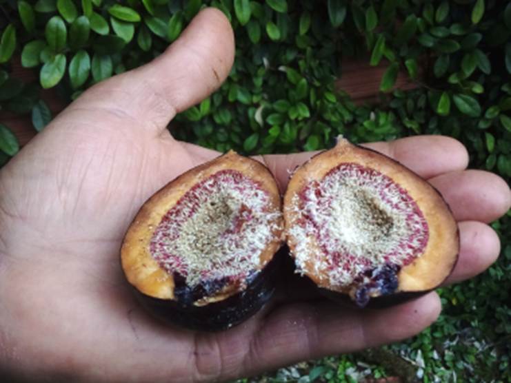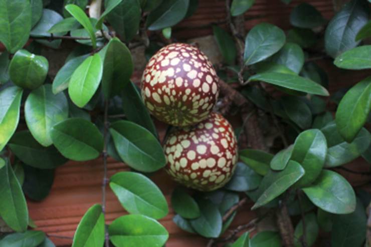OBSERVAÇÕES: Planta raríssima e ainda pouco conhecida e cultivada aqui no pomar coleção a partir de sementes plantadas em 2.011. a planta cresceu lentamente e começou a produzir os primeiros frutos em julho de 2023. Agora formamos mudas a partir de estacas da planta mãe e essas mudas começam a produzir frutas com 3 a 4 anos após o plantio, É uma maravilhosa planta para revestir e formar paredes e telhados verdes e ainda produz ótimas frutas para fazer doce em cauda!