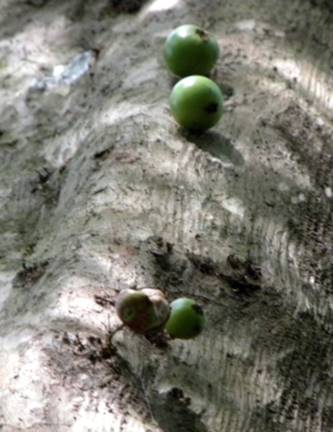 Características: Arvore reta quando no meio da mata crescendo de 6 a 15 m de altura, formando tronco único, escavado ou sanfonado (com ondulações profundas), medindo 30 a 50 cm de diâmetro. A casca é fina, de coloração parda e acinzentada na época do desprendimento anual das placas que são finas. Os raminhos novos são glabros (sem pelos) e levemente quinados. As folhas novas são menbranáceas (textura delicada) avermelhadas e a medida que crescem passam a cartáceas (textura de cartolina). A lamina foliar esta fixada sob pecíolos (haste ou suporte) com 2 a 4 mm de comprimento; com forma lanceolada (forma de lança), elípticas (alongadas), medindo 2,5 a 4 cm de comprimento por 1,5 a 1,8 cm de largura. A base é aguda e o ápice é acuminado (com ponta longa), sendo a nervura central saliente na face inferior, pubérulas (com pelos curtos e esparsos). Sobre o tronco e galhos nascem inflorescências protegidas por minúsculas bractéolas pubescentes (cobertos de pelos), agrupados em numero de 5 a 9 flores. O botão floral mede 3 mm de cumprimento. O cálice (invólucro externo) tem 4 sépalas, sendo 2 maiores e 2 menores e a corola (invólucro interno) é formada por 4 pétalas arredondadas de 2 a 3 mm de comprimento e cilioladas no ápice. O fruto mede de 1,8 a 3 cm de comprimento e antes de amadurecer totalmente tem cor arroxeada ficando com a casca preta ou rajada quando totalmente madura. A casca é firme e meio amarga quando mastigada; a baga é arredondada e abriga 1 a 4 sementes pardacentas, arredondadas, achatadas nos polos, medindo 0,6 a 1 cm de largura.