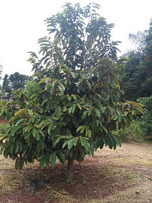 Plantando: Em pleno sol ou na sombra com boa luminosidade, em pomares, em jardins botânicos ou em coleções de recursos genéticos por ser espécie rara. Plantar com espaçamento de 4 a 6 m, solos de terra vermelha ou arenosos, que sejam úmidos e profundos, com pH entre 4,5 a 6,8. As covas devem ter 50 cm de largura, altura e profundidade. Veja como fazer um bom plantio clicando aqui! Misture 4 a 5 pás de matéria orgânica composta de origem vegetal + 50 gramas de farinha de osso e 50 gramas de torta de mamona nos 25 cm da terra da superfície e deixe curtir por pelo menos 1 mês antes do plantio! A variedade aclimatizada que tenho, resiste bem a geadas ocasionais de 1 a 3 graus negativos, a secas de até 5 meses sem chuva, e a ventos moderados. Pode ser cultivada em altitudes de 450 a 1.200 m com temperaturas anuais de 8 a 40 graus. Plantar de out a dez e irrigar com 10 l de agua, uma vez por semana.