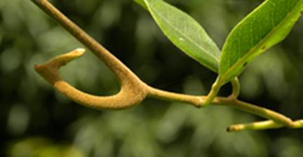 Características: Planta de hábito trepador com caule lenhoso chegando ao topo das arvores, crescendo de 5 a 15 m de comprimento, e galhos secundários eretos ou escandentes de 30 cm a 4 m de comprimento. O caule principal é cilíndrico, mede 5 a 15 cm de diâmetro e tem casca lisa e acinzentada. As folhas são semi-perenes, alternas, cartáceas (como cartolina), obovada (forma de ovo invertido), medindo 4 a 7,5 cm de comprimento por 1,8 a 4 cm de largura; com nervura central esparso-pilosa no dorso. Essa espécie pode ser facilmente identificada por se observar nos ramos novos gavinhas clipeforme (forme de clipes) conforme foto ao lado. As flores surgem nas brotações novas ou nas gavinhas, e têm forma arredondada com pétalas carnosas côncavas (como barco) de cor esverdeada medindo de 10 a 15 mm quando aberta. O fruto é um sincarpico (frutos soldados pela casca) de 3 a 5 cm de diâmetro, com casca amarelo escura quando madura e mamilos achatados.