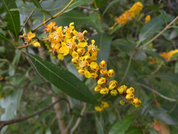Características: Arvore de médio porte, ramificada desde a base, atingindo de 3 a 5 m de altura, com copa cônica e na natureza com troncos múltiplos. A casca do tronco adulto é áspera e acinzentada. As folhas de coloração verde escura são simples, cartáceas (como cartolina), seríceas (com pelos curtos e crespos) até que a folha se torna adulta, são também oblongas (mais longa que larga), medindo 6 a 11 cm de comprimento por 1,6 a 3,3 cm de largura. A base é cuneada (forma de cunha) e levemente revoluta (enrolada para baixo) e o ápice apiculado (com ponta curta) e curva. As flores são amarelas brilhantes, em numero de 20 a 40 flores dispostas em racemos (um tipo de cacho com uma haste central) de 10 a 18 cm de comprimento que na maioria das vezes são ondulados; sendo essa uma que ajuda a identificar a espécie.