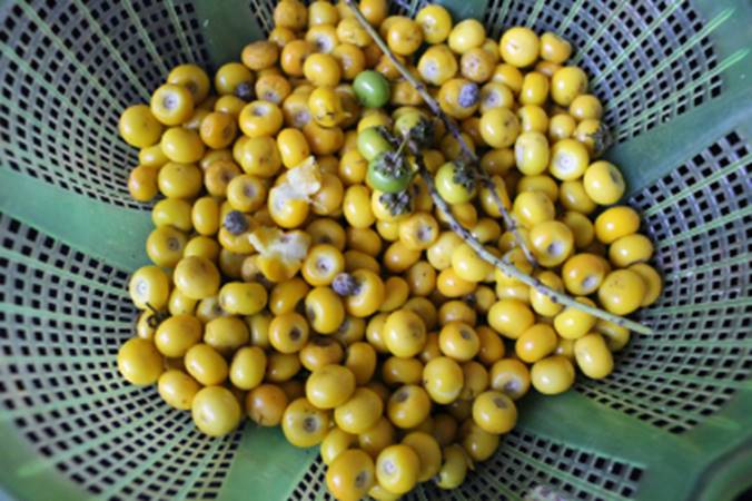 despolpados para posterior uso em sucos, geleias ou sorvetes. As flores são