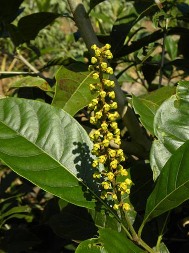 Características: Arvore de médio porte, ramificada desde a base, atingindo de 3 a 7 m de altura, com copa arredondada. O tronco é cilíndrico e bifurcado casca pardascenta. As folhas de coloração verde escura são simples, cartáceas (como cartolina), glabras (sem pelos), tendo apenas as brotações pubescentes (coberta de pequenos pelos), oblongas (mais longa que larga), medindo 8 a 16 cm de comprimento por 3 a 6,5 cm de largura. As folhas velhas ficam avermelhadas no inverno antes de caírem, proporcionando um espetáculo à parte. As flores são amarelo escuras, em numero de 20 a 40 flores dispostas em pequenos racemos (um tipo de cacho com uma haste central) eretos e verticais.