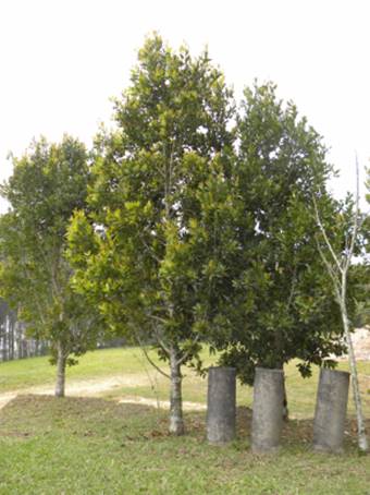 Cultivando: Fazer apenas podas de formação, e eliminar os galhos que estiverem mal formados ou nascerem para dentro da copa, permitindo que aja espaço entre os galhos do meio para penetração do sol. Adubar com composto orgânico, pode ser 3 a 4 pás + 50 gr de N-P-K 10-10-10 dobrando essa quantia a cada ano até o 3ª ano. Distribuir os nutrientes à 5 cm de profundidade, em círculos distanciados à 50 cm do tronco. Sempre manter capim seco ou qualquer tipo de cobertura morta a fim de manter umidade constante.