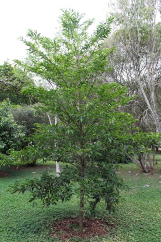 Cultivando: Fazer apenas podas de formação da copa e eliminar os galhos que nascerem na base do tronco, caso deseje que a arvore cresça ou caso prefira que produza uma copa arredondada, pode o broto terminal e faça podas de modelagem no inverno. Adubar com composto orgânico, pode ser 4 pás de matéria orgânica + 30 gr de N-P-K 10-10-10, distribuindo os nutrientes à 20 cm do tronco; dobrando essa quantia a cada ano até o 3ª ano.