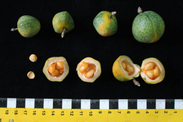 NOMENCLATURA E SIGNIFICADO: GUAÇATONGA-BACUPARÍ vem do Tupi guarani e significa “madeira riscada” e o segundo nome é porque o fruto lembra um bacuparí. Também chamada de Laranjeira do mato e Mingau de macaco ou Milho de macaco.