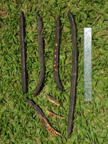 Usos: Frutifica de maio a setembro. Os frutos são duros e quando bem maduros (Com coloração verde acastanhada) tem aroma de bolo de mel e nesse estagio podem ser partidos ao meio para chupar os gomos, ou quando estiverem mais secos podem ser quebrados e colocados numa panela com agua cobrindo os pedaços que devem ser fervidos até a agua ficar preta amarronzada, coando para retirar as cascas e sementes. O liquido pode ser diluído as gosto com agua ou leite e adoçado a gosto, tendo aí uma deliciosa er nutritiva bebida. As arvores pode ser cultivada como ornamental pela beleza da flotação e por proporcionar ótima sombra. A planta não devem faltar em reflorestamentos de preservação permanente, pois seus frutos alimentam macacos, pacas, cutias, graxains e porcos do mato quando as vagens caem no chão.