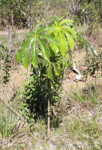 Características: Arvore de 4 a 7 m de altura, com tronco de casca cinzenta com manchas brancas e com marcas deixada pela queda das folhas. A copa tem forma de taça com galhos bem distribuídos e ascendentes. As folhas se concentram no ápice dos galhos e são digitadas com 7 a 10 lobos (recortes) sob pecíolo (haste ou suporte) cilíndrico, medindo de 30 a 55 cm de comprimento. A lamina foliar é áspera e tomentosas (coberta de lanugem), sendo que a face inferior é brancacenta e prateada, sendo essa uma característica que distingue essa espécie das outras. A inflorescência é axilar (no encontro da junção da folha com o ramo) e espiciforme (em forma de espiga) com inúmeras flores minúsculas e unissexuais.