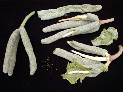 Mudas: As sementes são minúsculas, alongadas de coloração escura e difícil de separar do fruto, o qual deve apodrecer e depois ser lavado em peneira para limpeza das sementes que devem ser semeadas em canteiros com substrato de matéria orgânica bem curtida e peneirada. A germinação ocorre em 20 a 40 dias e as plantas devem ser repicadas com 12 cm de altura. As mudas atingem 40 cm com 6 meses de viveiro e a planta inicia a frutificação com 1 a 2 anos.