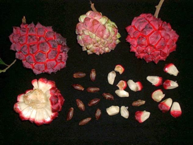 Mudas: Sementes são dormentes se forem secas, conservando o poder germinativo por mais de 1 ano. Recomendo que as sementes sejam semeadas em jardineiras contendo o substrato rico em matéria orgânica, deixando em estufa onde mantenha umidade e calor. Dessa forma as sementes germinam em 40 a 90 dias. Quando as plântulas estiverem com 2 a 4 folhas devem ser transplantadas para sacos individuais contendo substrato feito de 50% de matéria orgânica e  50% de terra vermelha. Formar as mudas na sombra; assim vão atingir 30 cm com cerca de 12 a 15 meses. As mudas no campo crescem 30 cm por ano nos primeiros 2 anos após o plantio, depois crescem mais rapidamente.