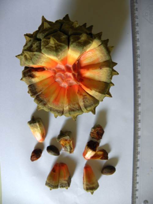 OBSERVAÇÕES: Espécie rara que corre o perigo de extinção. Embora o fruto seja grande tem muito pouco arilo ou polpa, mais isso se dá pelo fato de a planta ser silvestre e nunca foi cultivada ou domesticada. Encontramos essa raridade nas expedições pela mata atlântica no mês de Agosto de 2.012.