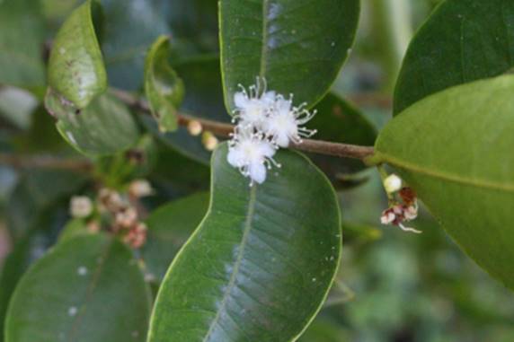 Características: Arvoreta de médio porte, atingindo 2 a 3 m em pleno sol e até 8 metros de altura na floresta (a planta cresce mais). O caule é bifurcado e múltiplo com casca amarronzada. As folhas são simples, cartáceas (como cartolina), glabras (sem pelos) obovadas (forme de ovo mais com a parte larga no ápice) medindo 3 a 7 cm de comprimento por 1,8 a 3 cm de largura, com base cuneada (forma de cunha) e ápice longo acuminado e as vezes recurvado. A espécie pode ser facilmente identificada por se observar as flores em capítulos ou agrupadas em feixes com forma de cabeça quando em botão; com 3 a 7 flores com pedicelos ou cabinhos de 2 a 3 mm de comprimento. A flor aberta é branca e mede 1 cm de diâmetro com cálice 4 lobado e corola com 4 a 5 pétalas brancas unguiculadas (com forma de unha –mais estreita na base e larga no ápice). Os frutos tem formatos variados conforme explicado acima, com pele fina e preta quando madura, medindo de 1,5 a 3 cm por 1,8 a 2 cm de largura, com polpa carnosa, saborosa, envolvendo 1 ou 2 sementes.