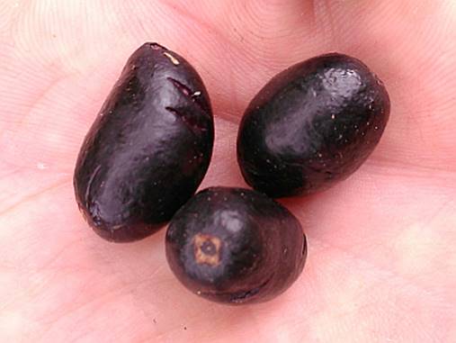 USOS: Frutifica em março a abril. Os frutos são oblongos (mais longo que largo) com até 2 cm de comprimento, tem polpa negra e com sabor que lembra um pouco uma mistura de goiaba por amadurecer com jabuticaba. É frutífera muito atrativa para pássaros.