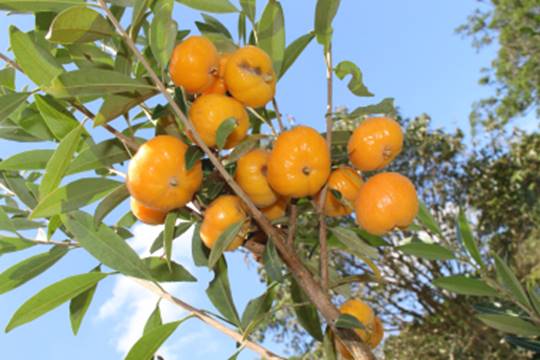 livres. Os frutos são arredondados medindo 3 a 4 cm de diâmetro com casca amarela e pubescente