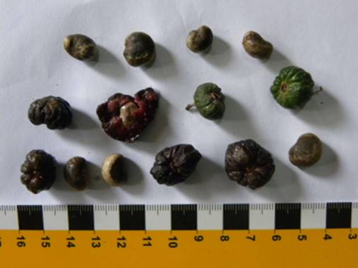 Frutos maduros, verdes e sementes (Foto: Helton Josué) |