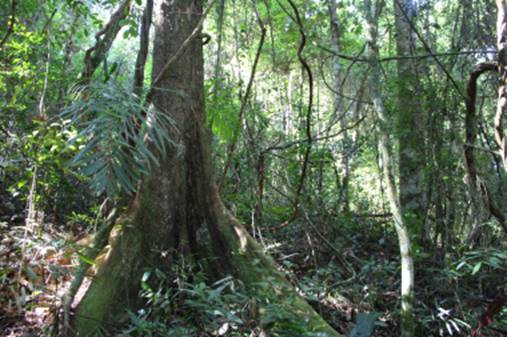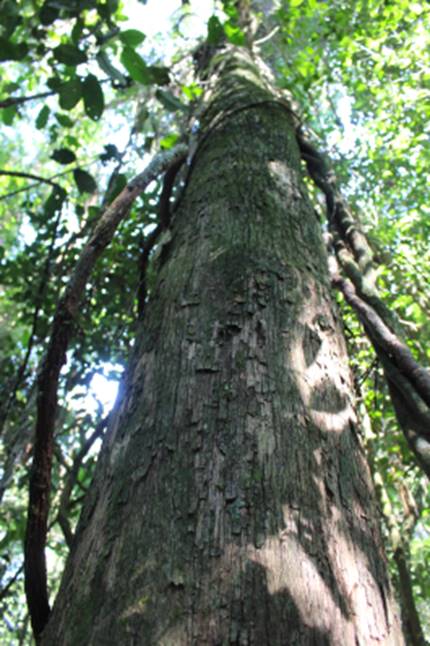 No final de outubro de 2.018 voltei a percorrer o remanescente da floresta semidecidual onde já havíamos encontrado a Tanimbuca e Bicuiba cujo relato está ne primeira coluna e fomos pegos de surpresa no meio da floresta com chuva, mais a chuva nos ajudou a achar o raro jatobaí (Hymenaea altíssima) pois os frutos molhados no chão ficaram mais fáceis de cerem vistos entre as folhas e conseguimos encontrar um raro exemplar desse saboroso jatobá de fritos pequenos cuja foto do fruto e do tronco aparece abaixo: