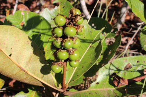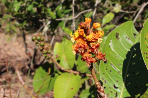 No final do mês de junho e julho voltamos a pesquisar uma floresta semidecidual nas margens de um ribeirão no município de Campina do Monte Alegre –SP e pudemos encontrar várias frutíferas já conhecidas por nós como o Aguai e a Usama e outra desconhecida que a princípio se parecia muito com uma árvore de canela mais que depois descobrimos ser a Schoepfia lucida chamada popularmente de Maracambé-iva. Clique no link para saber mais. E este é um registro exclusivo das flores e frutos maduros dessa espécie que até então não estava catalogada para o estado de São Paulo no  http://www.floradobrasil.jbrj.gov.br/