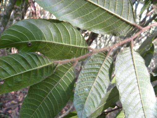 Cada ano que passa vai ficando mais difícil encontrar frutas de espécies diferentes pelo fato de que a minha coleção já ultrapassa as 1.500 espécies. Mais mesmo assim as nossas matas e cerrados ainda escondem espécies raríssimas tais como o inharé-mirim (Pseudolmedia hisurta) que encontrei um único pé na floresta semidecidual de altitude no município de Angatuba – SP em fevereiro de 2.019 cuja foto das folhas está abaixo: