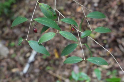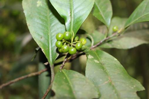 Nos meses de março e abril continuamos a busca por frutíferas da floresta semidecidual montana com mais de 800 m de altitude e acabamos achando outra frutifera rara que é o guamuçai amarelo (Ardisia warmingii) cuja planta é um arbusto que gosta de sombra com bordas dentada ou crenada, bastante característica. A espécie é muito rara e os frutos maduros são amarelados e com bom sabor. Abaixo foto das folhas e dos frutos: