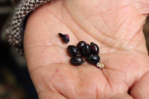 Nós ainda não encontramos flores ou frutas da espécie mais estamos cuidando da planta na mata com adubação e poda de galhos de outras arvores ou cipós que estavam caídos ou sufocando a planta.