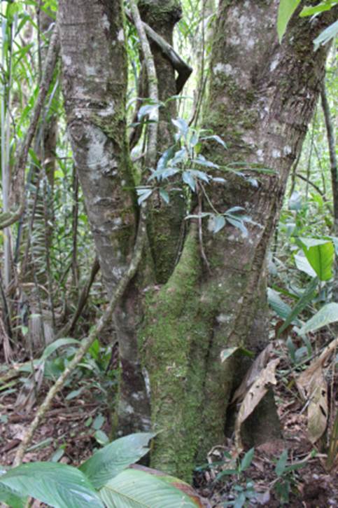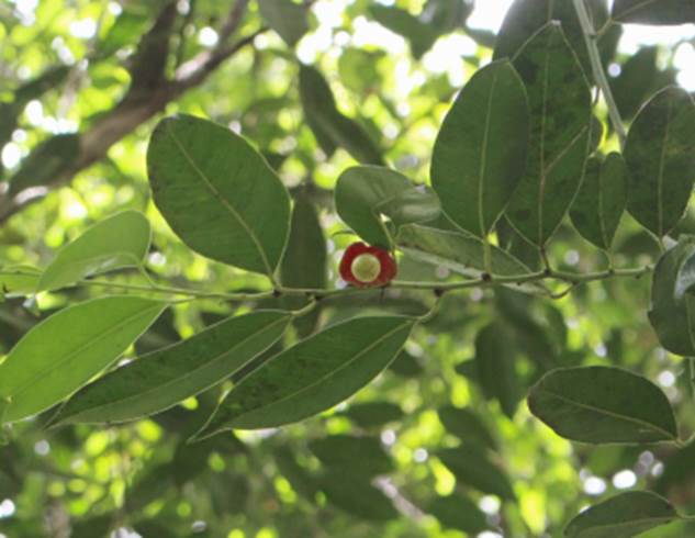 Alguns metros de distancia dessa magnifica uvaia da floresta semidecidual que tem gosto de suco de laranja; chegamos próximo a arvore que parecia ser canela, mais na verdade era uma espécie de brindo de princesa ou gumbijava (Heisteria silvianii) família olacaceae; ou até uma espécie nova próxima dessa, pelo fato de a H. silvianii só ocorrer na floresta pluvial atlântica. Não pude coletar muitos frutos e nem tirar boas fotos porque bem perto dessa arvore num outro tronco tinha um enxame de abelha europeia alvoroçadas porque a noite algum animal as atacou para comer o mel produzidas por elas. Abaixo estão algumas fotos que tirei: