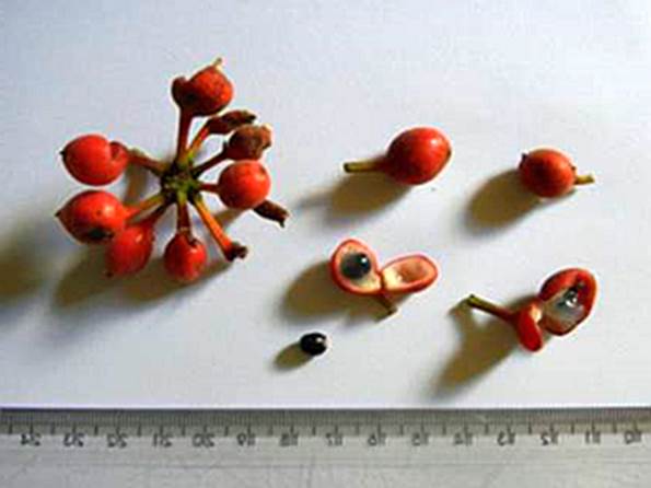 Mudas: As sementes são pequenas ovaladas e depois de despolpadas e secas podem ser armazenadas em local escuro, conservado assim o poder germinativo por 1 ano. Após o plantio entram em dormência no inverno e só germinam em 120 a 170 dias quando a temperatura volta a subir. Convém semear 2 sementes por embalagem individual contendo substrato feito de 40% de terra vermelha, 20% de areia branca de rio e 40% de matéria orgânica bem curtida feita de folhas e galhos triturados. As mudas atingem 30 cm com 10 a12 meses de idade, mais apreciam ambiente sombreado para formação. A frutificação inicia-se com 4 a 6 anos, dependendo do solo e tratos culturais.