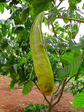 Características: arvore com 3,5 a 12 m de altura com 20 a 40 cm de diâmetro na base do tronco e quando cultivada a pleno sol, normalmente atinge 4 a 6 m de altura formando copa ampla e baixa semelhante a um guarda-chuva cujos ramos chegam a encostar no chão. O tronco é bifurcado e os galhos são múltiplos e arqueados para fora da copa, a casca é cinza esverdeada, levemente áspera por causa das lenticelas (estruturas usadas para respirar). Essa espécie tem uma característica particular, pois nos ramos mais novos na parte inferior há varizes ou veias salientes amarronzadas de fácil percepção. As folhas são pinadas (como pena) com raque ou haste central de 12 a 16 cm de comprimento, cuja base é pulvinosa (espessa engrossada) e o perímetro superior é alado (com laminas foliares laterais), formado de 3 a 4 pares de folíolos glabros (sem pelos) papiráceos (de textura de papel), com uma glândula secretora de açucares entre a inserção dos peciólulos (haste ou suporte secundários) que medem 3 a 4 mm e são levemente velutinos (como veludo). Os folíolos são elípticos ou ovalados, os inferiores são menores e os superiores maiores, medindo de 7 a 25 cm de comprimento por 4 a 9 cm de largura, com base arredondada e ápice acuminado (com ponta fina e comprida). As flores surgem em espigas (com varias flores inseridas sob um mesmo eixo) são axilares (no encontro do ramo e o pecíolo) e surgem em numero de 9 a 14 nos ramos terminais. Cada espiga mede 3 a 4,5 cm de comprimento, contem estipulas (tipo de folha modificada) lanceoladas, verdosas de 1 a 1,3 cm de comprimento, sob a base das flores que são em numero de 18 a 28 flores de 1,7 a 3,1 cm de comprimento. O fruto é do tipo vagem, quadrangulada (achatada na largura e quadrada com friso ou dobra na lateral) de cor verde escuro, chegando a ficar amarelado esverdeado quando completamente madura, com casca de 4 mm de espessura e 20 a 38 cm de comprimento, 4 a 5,5 cm de largura e 2,8 a 3,5 de altura; pesando em media 260 a 400 gramas.