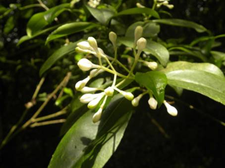 flores tubulares, brancas e muito perfumadas. Os frutos são bagas de coloração