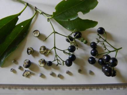 permanente das restingas e da mata atlântica. Os frutos atraem muitas espécies