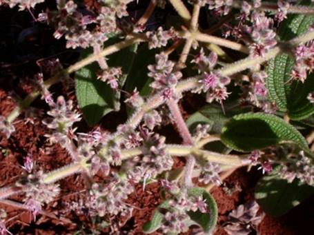 Características: Arbusto de 40 cm a  2,5 m de altura, com copa espalhada de 80 a 170 cm de diâmetro. Os brotos jovens são avermelhados e densamente tomentosos (coberto de lanugem de até 3 mm). As folhas são simples, opostas e cruzadas, revestidas de tricomas (sinônimo de pelo), tem textura coriácea (semelhante a couro) e nervação curvinérvia, ou seja, com duas ou três nervuras secundárias que percorrem a periferia do limbo ou lamina foliar saindo unidas desde a base e unindo-se novamente com a nervura central no ápice. A folha mede 6 a 12 cm de comprimento por 2,5 a 6 cm de largura, com pecíolo de 1,5 a 3 cm de comprimento. A base é cordada (tem forma de coração) e o ápice ou ponta é lanceolado (com forma de lança). As flores são hermafroditas e surgem em inflorescências racemosas (tipo de cacho piramidal) de 10 a 30 cm de comprimento que nascem a partir das áxilas das folhas superiores, com forma dicásia (com agrupamentos sucessivos de 2 ou 3 flores). Cada cacho contém 10 a 30 flores de 1,5 cm de diâmetro, diclamídeas ( com 2 envoltórios), com