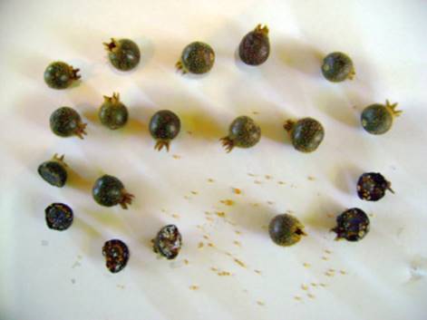 Mudas: As sementes são milimétricas e recalcitrantes (perdem o poder germinativo rapidamente), por isso devem ser plantadas logo que beneficiadas. Para separar as sementes recomendo espremer os frutos sob um papel toalha fino e deixar o conteúdo secar totalmente no sol. Após isso remova e esfarele as sementes grudadas. Após isso semear superficialmente numa jardineira (com 40 cm X 20 cm X 20 cm) contendo húmus de minhoca. É preciso irrigar delicadamente. A germinação se inicia em 20 a 40 dias e as plântulas podem ser transplantadas em embalagens individuais quando tiverem com 8 a 10 cm de altura. Tanto a sementeira como as mudas devem ser formadas em sombra plena. As mudas crescem lentamente, ficando com 30 cm com 8 a 9 meses de vida.
