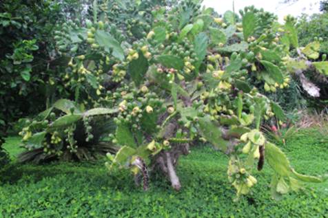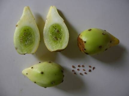 Usos: Frutifica em fevereiro a novembro. Frutos maduros tem cor amarelada e a casca tem pequeninos espinhos nas aréolas, e por isso recomendo colher com luva de couro, colocar numa caixa vasada e com uma vassoura varrer revirando os frutos para sair os espinhos, depois enxaguar em agua corrente para limpeza total. Após este processo p frutos podem ser descascados ou cortados no meio, para consumo in natura, ou em saladas ou ainda, os frutos mais verdes têm diversos usos em pratos salgados. A polpa muito deliciosa e refrescante tendo gosto de gelatina de limão e lembrando um pouco o kiwi. A planta é cultivada como ornamental e como cerca viva, mais tem grande potencial como frutífera comercial pois seus frutos são resistentes, saborosos e muito nutritivos.