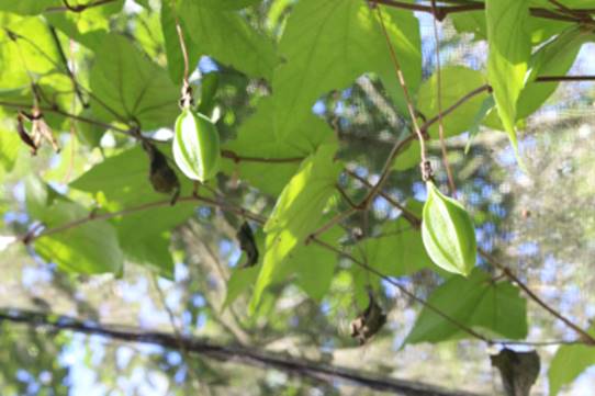 Cultivando: Fazer apenas podas de formação e eliminar os brotos que nascerem na base do caule, manejando os ramos num tutor e continuar amarrando os ramos até que suba na estrutura da parreira. Adubar com composto orgânico, pode ser 2 pás de cama de frango bem curtida + 20 gr de N-P-K 10-10-10 nos meses de setembro a outubro, distribuindo a 10 cm do caule no seu entorno. Essa espécie é bem resistente a pragas e doenças.