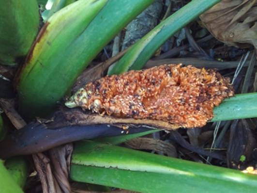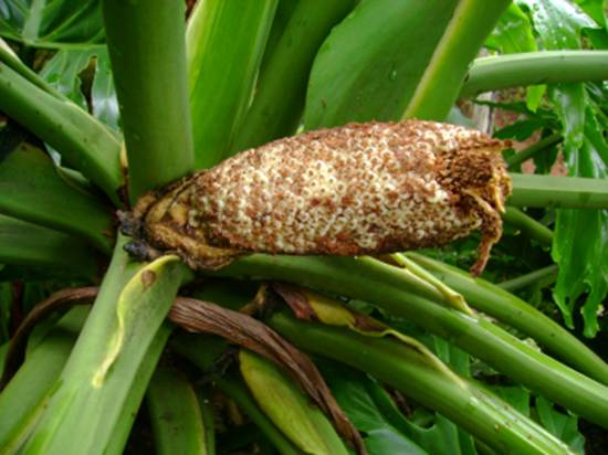 Cultivando: planta muito rústica e de fácil cultivo que não necessita de podas de galhos por não os ter. Apenas se deve fazer podas de limpeza, retirando as folhas velhas e amareladas. As raízes aéreas não devem ser cortadas. Adubar a planta 1 vez por ano com 3 a 4 pás de comporto orgânico bem curtido feito de galhos e folhas triturados + 40 gramas de farinha de osso e 40 gramas de torta de mamona, polvilhados por baixo das folhas. Se ficar sem chover por mais de 1 mês, faça irrigações semanais.