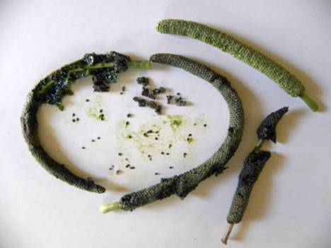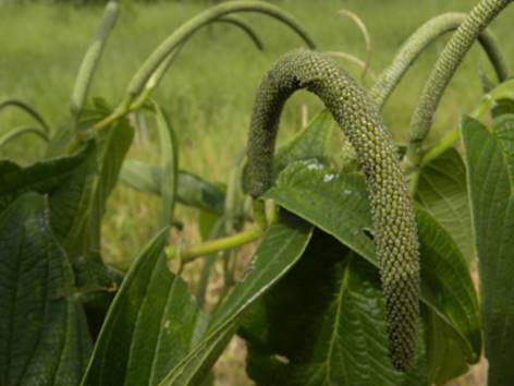 CARACTERISTICAS: Arbustos a arvoretas de 1,5 a 8 m de altura quando na floresta com ramos cilíndricos, estriados (com sulcos pouco profundos) e pubescentes (coberto de lanugem) com entrenós de 5,5 a 12 cm de espaçamento e caules com 2 a 8 cm de diâmetro na altura de 30 cm do solo. Os ramos novos são frágeis, de coloração verde amarelada e juntamente com as folhas são muito aromáticos. A bainha (lamina de proteção) é curta, de cor verde escura está fixada na base do pecíolo (haste ou suporte) que é viloso (com pelos densos e longos), medindo 4 mm a 2 cm de comprimento. As folhas são alternas, oblongo-lanceoladas (mais longa que larga e com forma de lança), papirácea (textura de papel), com glândulas translúcidas, medindo 11 a 15 cm de comprimento e 3,3 a 6,5 cm de largura, com base assimetrica (desigual) e cordada (como coração), sendo na faze juvenil pubescente (coberta de pelos) e puberulas (cobertas de pó), tornando-se glabrescentes quando mais velhas. As flores surgem nas axilas das folhas em espigas pendentes de 8 a 9,5 cm de comprimento com centenas de minúsculas flores que após serem fecundadas, formam frutícolos agregados ou unidos numa espiga longa, com 4 a 6 mm de espessura, de cor verde acinzentada, adocicada e com sabor de bala de hortelã.