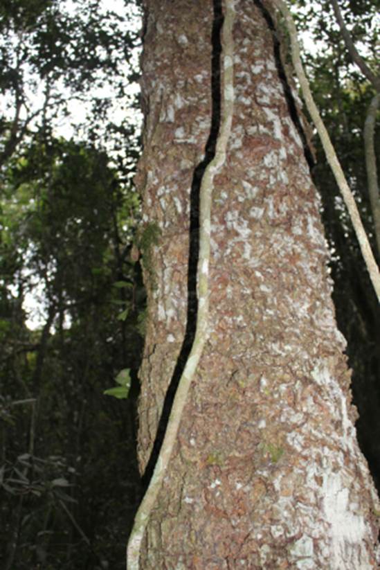 CARACTERISTICAS: descreverei as características que diferencia a espécie encontrada da espécie tipo Porcelia macrocarpa: árvore maior com 7 a 15 m de altura, de tronco com fissuras (sulcos em fôrma de V) e coloração castanho oliváceo – veja foto ao lado. Folhas lanceoladas (forma de lança) medindo 5 a 10 cm de comprimento por 1,5 a 2,5 cm de largura, com base arredondada e ápice acuminado (ponta longa) – veja foto abaixo. Flores sempre aos pares nas axilares de ramos maduros e nunca nas brotações como ocorre em (P. macrocarpa). As pétalas são membranáceas (delicadas) e de cor esbranquiçada. Os frutos dão em cachos com 2 a 8 bagas de forma oval, medindo de 5 a 8 cm de comprimento com casca de cor amarronzada quando madura, e formam gomos mais largos e contém polpa mais doce mais espessa e gelatinosa. As sementes são em menor número e maiores do que as de P. macrocarpa. Essas informações são suficientes para provar que a planta encontrada por mim é com certeza uma nova variedade ou espécie a ser catalogada.