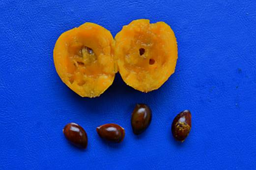 FRUTO CORTADO MOSTRANDO POLPA E SEMENTES |