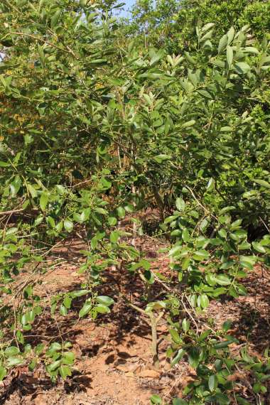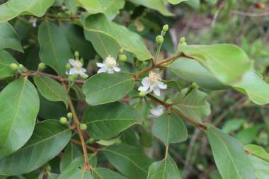 Características: É arbusto de 1 a 4 metros de altura composta de muitos ramos formados desde a base do tronco com casca descamante em pequenas placas cinza prateadas, o tronco geralmente é tortuoso e liso. Os brotos jovens são ferrugineos ou avermelhados e levemente pilosas (coberto de pelos brancos); as folhas são simples, glabras (sem pelos) e coriáceas (com consistência de couro), tem forma oblonga (mais longa que larga) com 8 a 13 cm de comprimento por 5 a 7 cm de largura, a margem é levemente ondulada, a base e o ápice podem ser obtusos ou arredondados, tornando-se marrons à medida que envelhece. O pecíolo mede 1 cm de comprimento e a lamina é mais pilosa (coberta de pelos) na face inferior e contém 8 a 10 pares de nervuras laterais, uniformes e arqueadas para o ápice. As flores nascem solitárias ou em dicásios (grupos de três flores) nas axilas das folhas e são hermafroditas, de cálice (invólucro externo) com 5 sépalas oblongas (mais longa que larga) de 0,8 mm de comprimento e levemente tomentosas (coberta de lanugem). A corola (invólucro interno) tem 5 pétalas brancas, arredondadas com forma de concha, medindo 1,2 cm de comprimento e reflexas na antese, isto é, voltadas para baixo. A Fruta é uma baga globosa de casca fina e amarelada de até 4 cm de diâmetro, com carne de até 4 mm de espessura, envolvendo polpa amarela ou alaranjada de textura cremosa, envolvendo muitas sementes triangulares de 2 mm de espessura. Cada fruto pesa em media de 15 a 36 gramas.