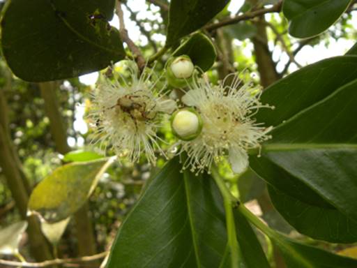 folhas jovens. A flor aberta é branca, fragrante e mede 1,5 cm de diâmetro,