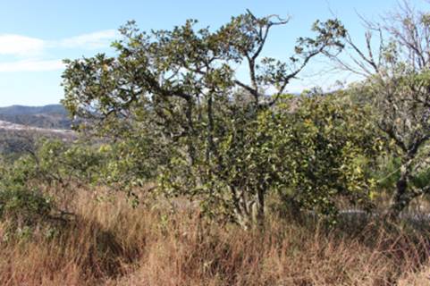 perenifólia, mediana que atinge 2 a 5 m de altura, com troncos múltiplos e bifurcados