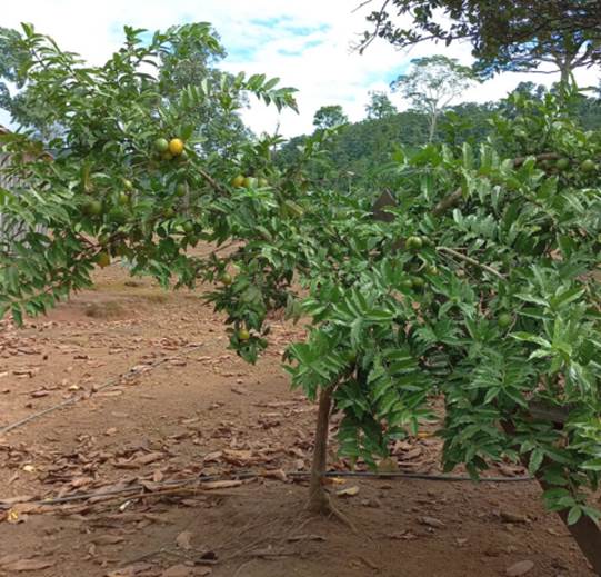 Cultivando: Fazer apenas podas de formação da copa e eliminar os galhos que nascerem na base do tronco ou dos ramos que nascerem cruzados ou voltados para o interior da copa. Adubar com composto orgânico, pode ser 4 pás de cama de composto orgânico bem curtido + 50 de farinha de chifre e casco de boi dobrando essa quantia a partir do 3ª ano, depois manter essa adubação. A planta é resistente a pragas e doenças e nem mesmo os frutos são atacados por moscas das frutas.
