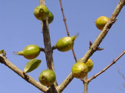 espinhos cruzados. As folhas são caducas (caem no inicio da primavera),
